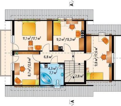 • 4M3006a Проект будівництва мансардного особняка з гаражем на 1 автомобіль