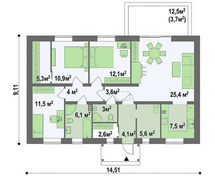 Проект будівництва невеликого 1 поверхового будинку загальною площею 105 кв.м 4M7037