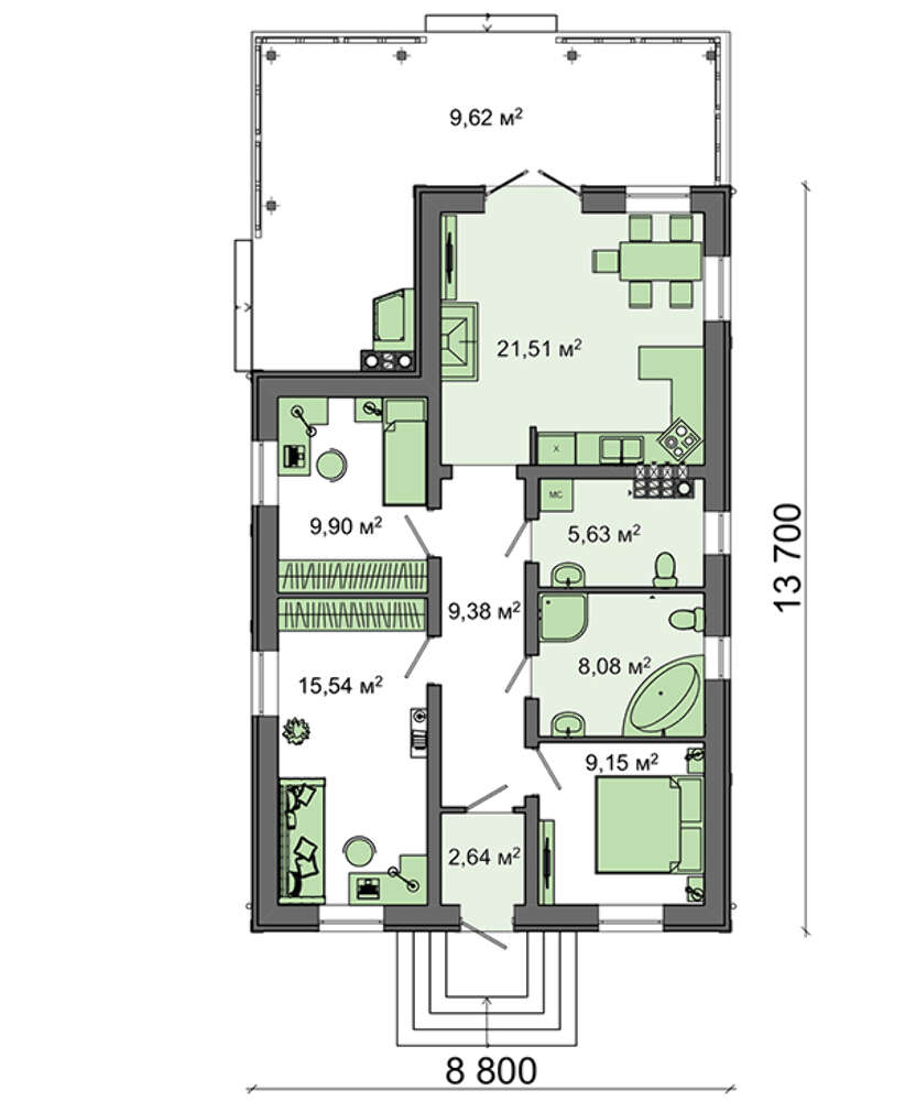 Всі наші типові проекти враховують основні потреби середньостатистичної сім'ї, щоправда, в такому випадку говорити про індивідуальність вашого майбутнього житла не доводиться. Але, щоб будинок виглядав оригінально і повністю відповідав вашим вимогам, ми готові внести зміни в проект.