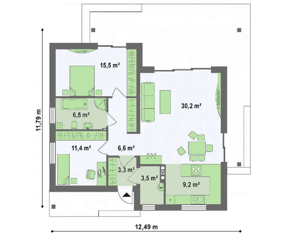 Площа забудови:108.7 м2