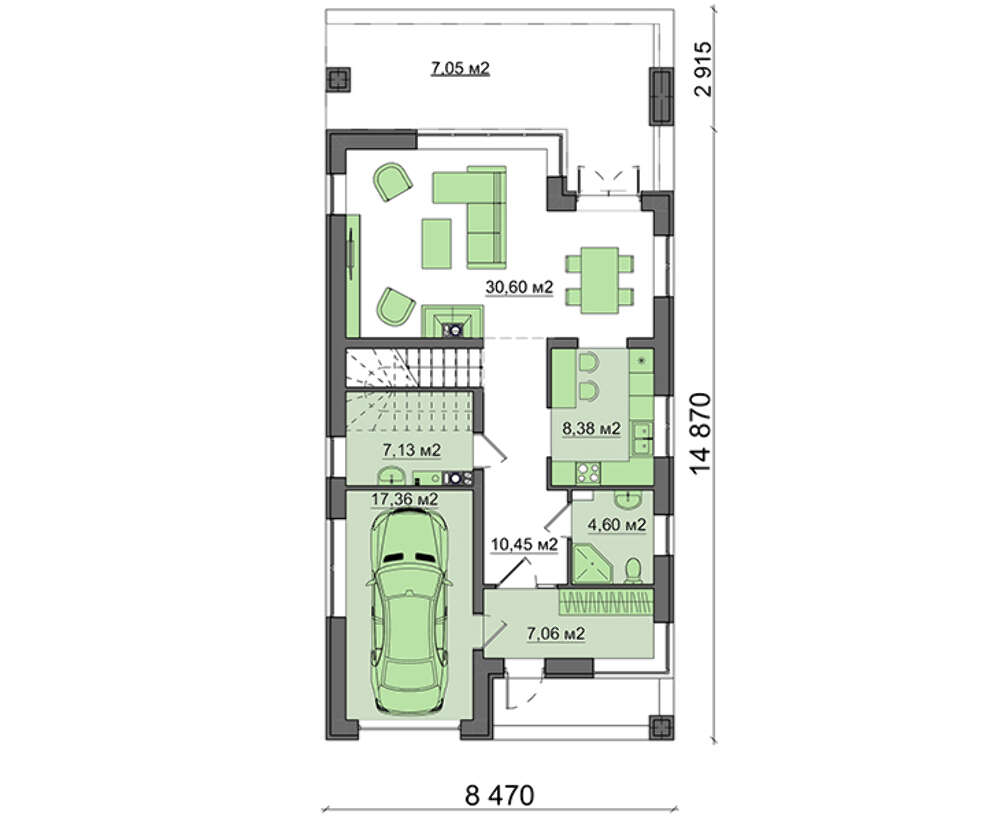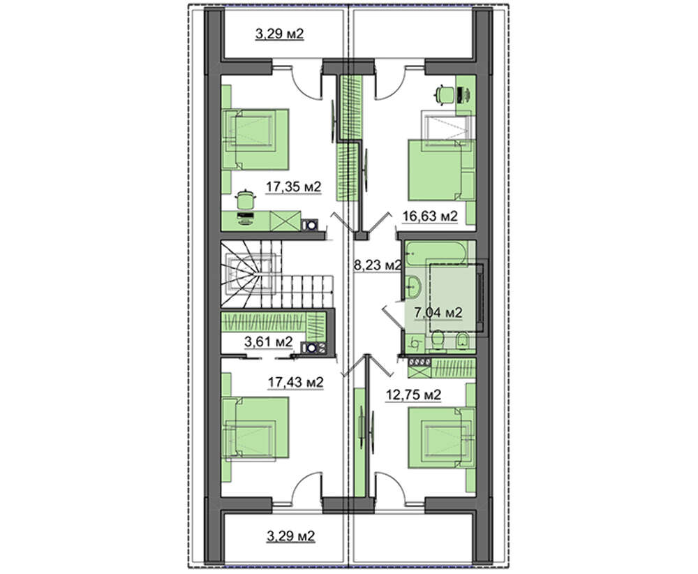 Проект двоповерхового будинку для вузької ділянки 4M3714