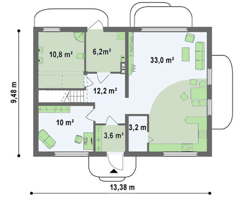 Проект двоповерхового будинку з двосхилим дахом 4M600a