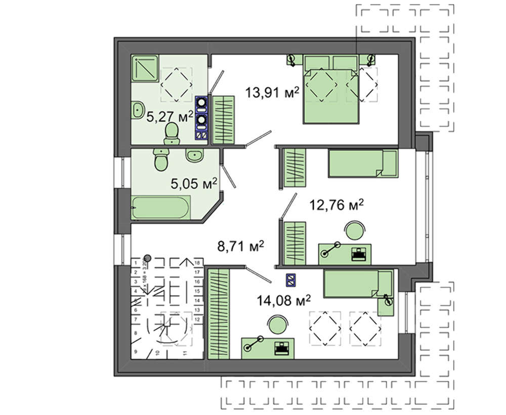 Всі наші типові проекти враховують основні потреби середньостатистичної сім'ї, щоправда, в такому випадку говорити про індивідуальність вашого майбутнього житла не доводиться. Але, щоб будинок виглядав оригінально і повністю відповідав вашим вимогам, ми готові внести зміни в проект.