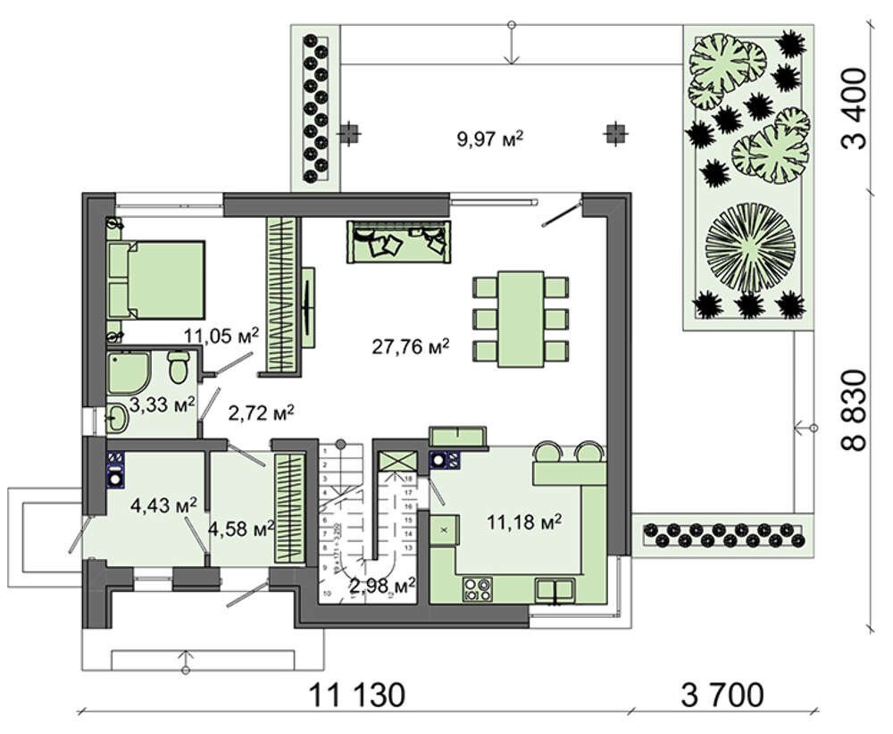 Всі наші типові проекти враховують основні потреби середньостатистичної сім'ї, щоправда, в такому випадку говорити про індивідуальність вашого майбутнього житла не доводиться. Але, щоб будинок виглядав оригінально і повністю відповідав вашим вимогам, ми готові внести зміни в проект.