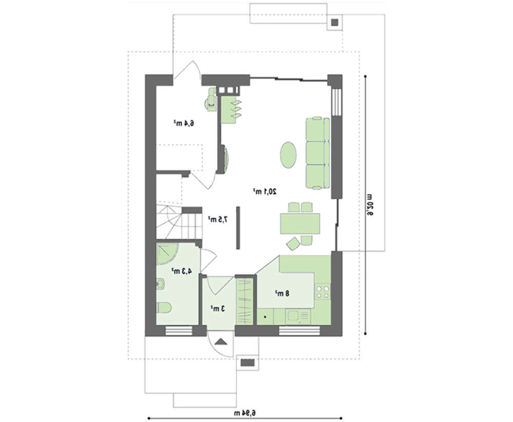 | Площа забудови: | 64.6 м2 |