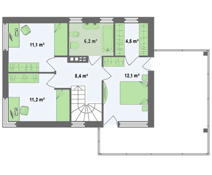 • 4M694s Проект двоповерхового котеджу з плоским дахом і просторою терасою