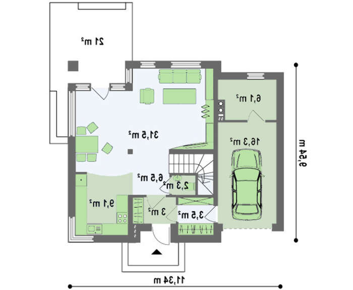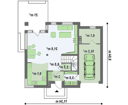 • 4M668 Проект двоповерхового сучасного котеджу з трьома спальнями і гаражем