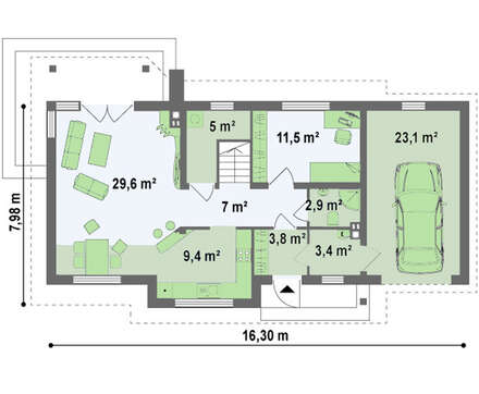 • 4M496G Проект економічного будинку з мансардою та гаражем