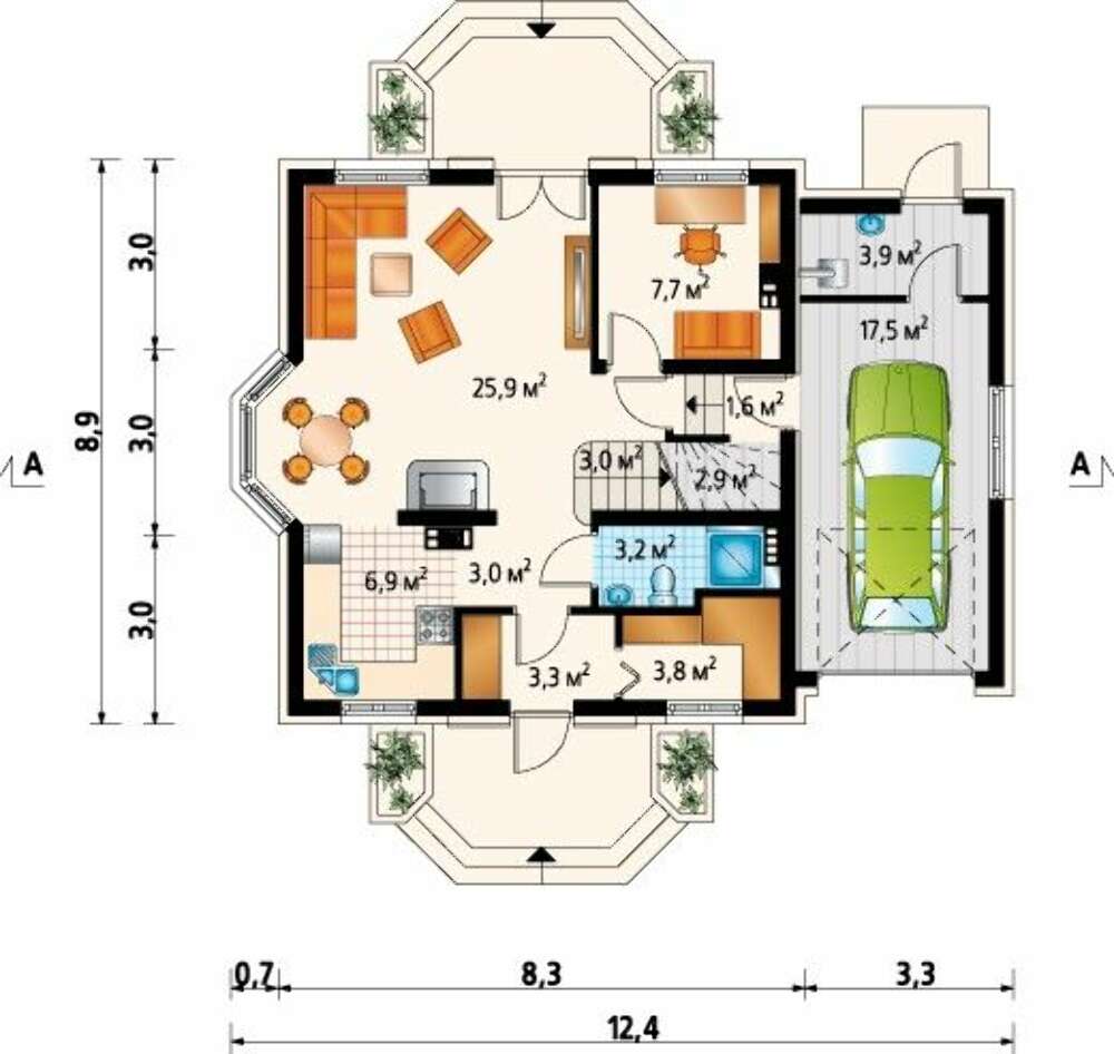 Проект гарного будинку з гаражем на одну машину 4M3425b