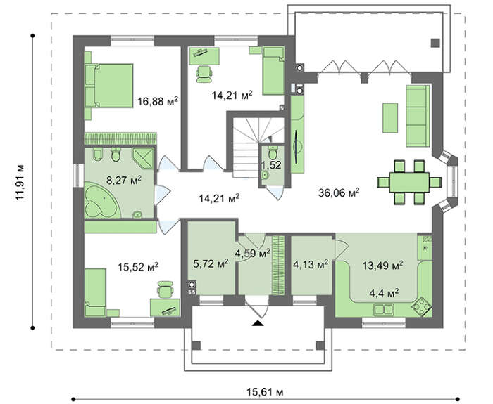 Всі наші типові проекти враховують основні потреби середньостатистичної сім'ї, щоправда, в такому випадку говорити про індивідуальність вашого майбутнього житла не доводиться. Але, щоб будинок виглядав оригінально і повністю відповідав вашим вимогам, ми готові внести зміни в проект.