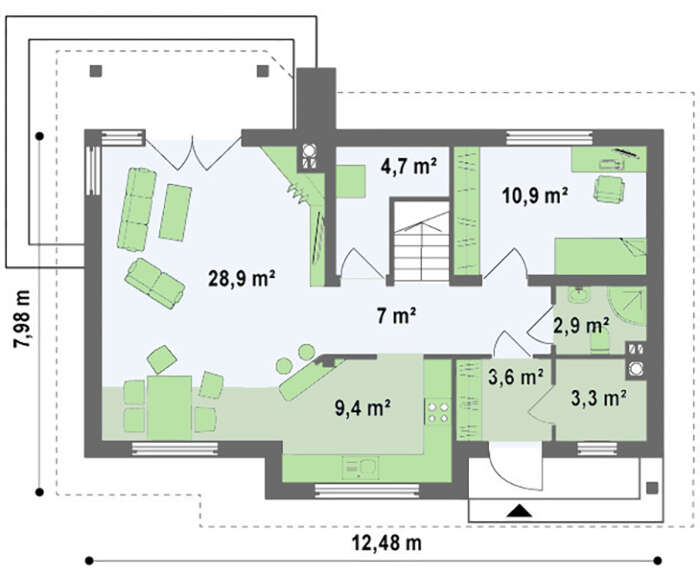 • 4M496 Проект класичного будинку з великою кімнатою на першому поверсі