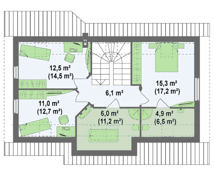 Проект класичного будинку з великою кімнатою на першому поверсі