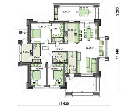 • 4M1474 Проект компактного будинку площею 164 кв. м з трьома особистими спальнями