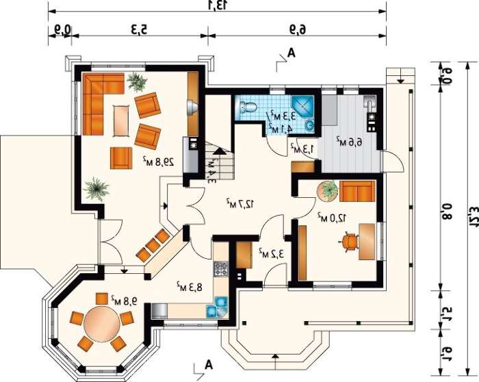 Проект компактного котеджу з цікавим дизайнерським рішенням 4M3370