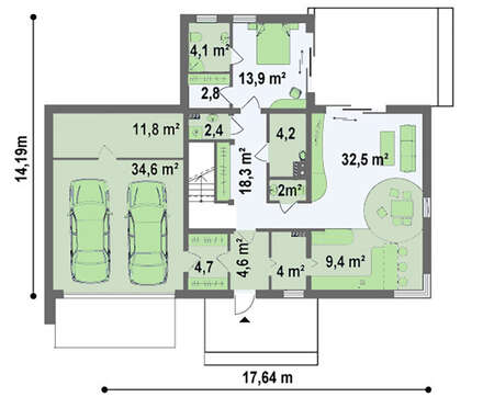 • 4M666G Проект котеджу в стилі хайтек з гаражем для двох авто