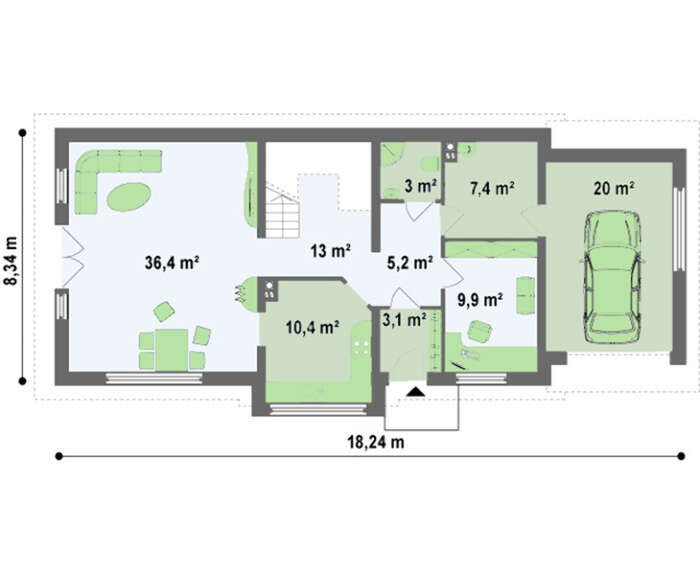 Проект котеджу з еркером і мансардою для вузької ділянки 4M074