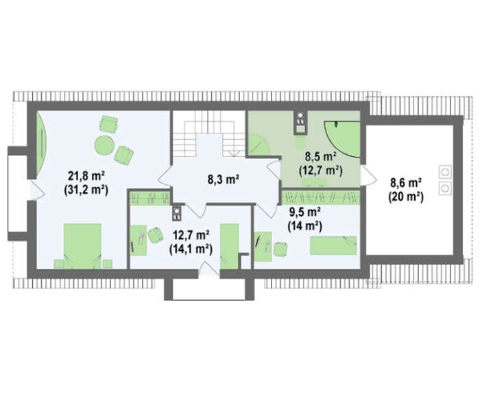 Проект котеджу з еркером і мансардою для вузької ділянки