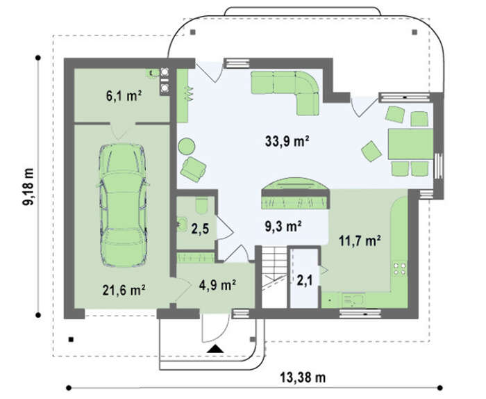 | Кут нахилу покрівлі: | 38 ° |