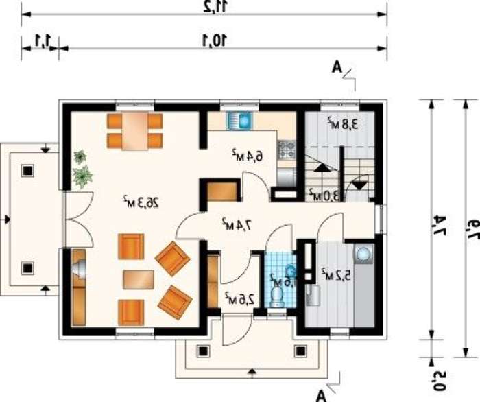 • 4M3620 Проект котеджу з красивим балкончиком 8 на 10