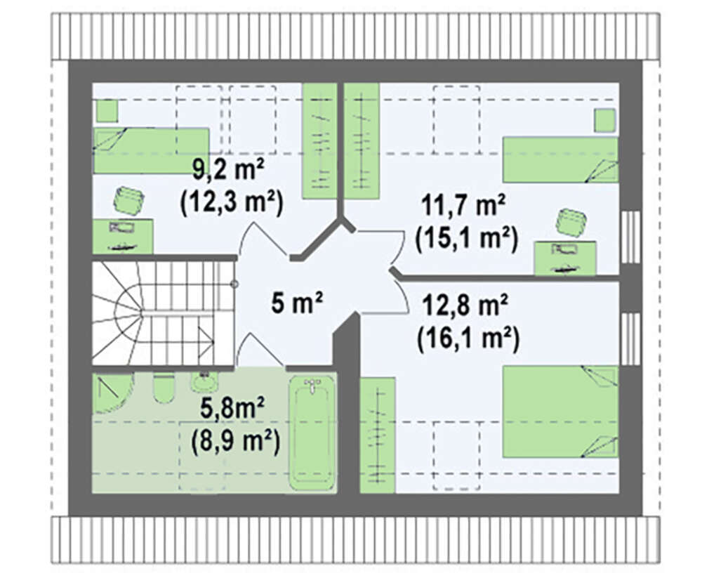 Проект котеджу з мансардою, двосхилим дахом і дерев'яним фасадом 4M194