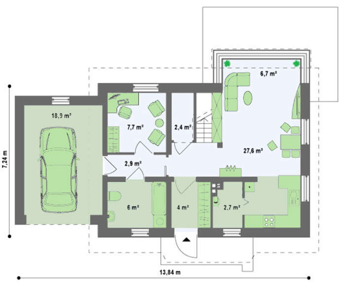 Будинок є оптимальним для стандартних заміських ділянок. Проста форма, компактні габарити та функціональне зонування дозволяють раціонально використовувати кожен метр простору.