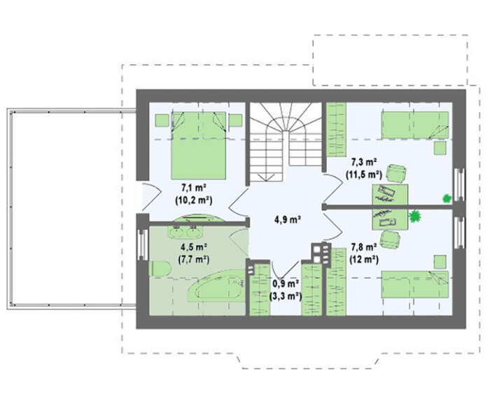 Мінімальні розміри ділянки: довжина – 17 м, ширина – 21 м, площа забудови – 93 м²