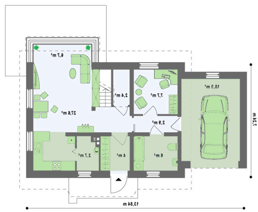 Будинок є оптимальним для стандартних заміських ділянок. Проста форма, компактні габарити та функціональне зонування дозволяють раціонально використовувати кожен метр простору.