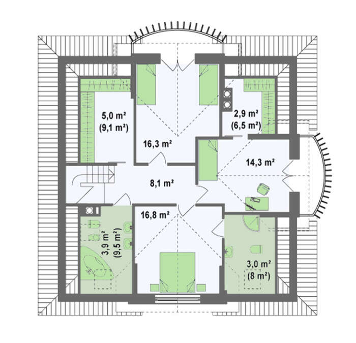 Дах:керамічна черепиця, металочерепиця, цементно-піщана черепиця