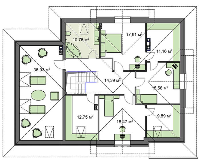 • 4M1459 Проект котеджу з мансардою і еркером площею 289 кв.м