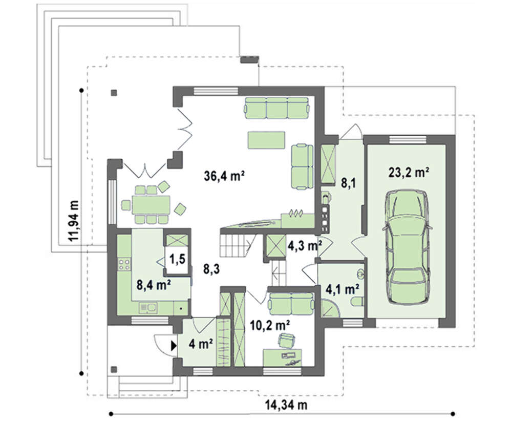 • 4M328 Проект красивого будинку з мансардою та гаражем