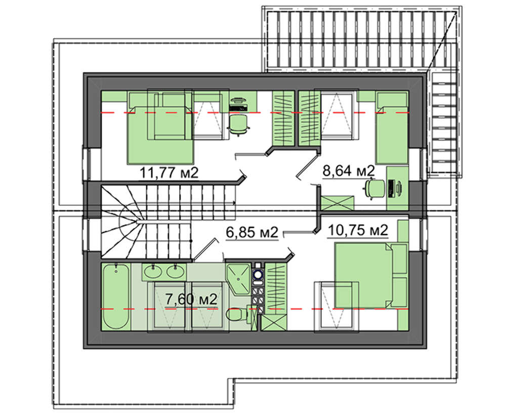 Всі наші типові проекти враховують основні потреби середньостатистичної сім'ї, щоправда, в такому випадку говорити про індивідуальність вашого майбутнього житла не доводиться. Але, щоб будинок виглядав оригінально і повністю відповідав вашим вимогам, ми готові внести зміни в проект.
