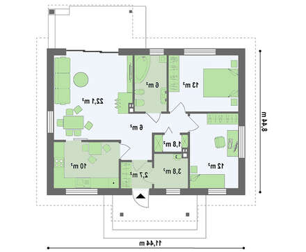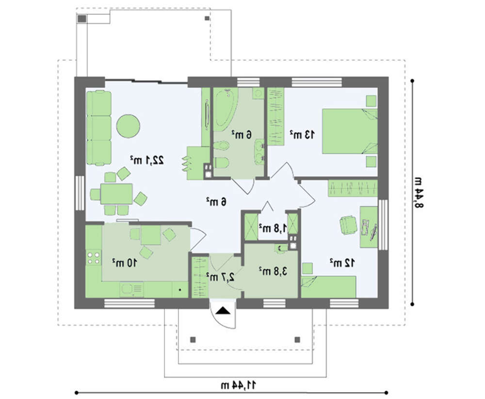 • 4M276 Проект невеликого акуратного одноповерхового будинку з двосхилим дахом