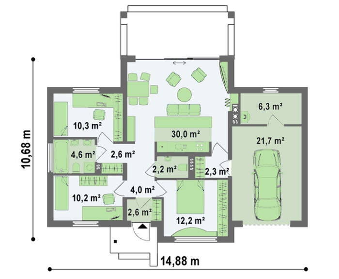 • 4M068 Проект невеликого одноповерхового котеджу площею 109 m²