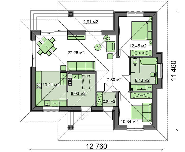 Проект невеликого заміського котеджу площею 90 кв. 4M1507