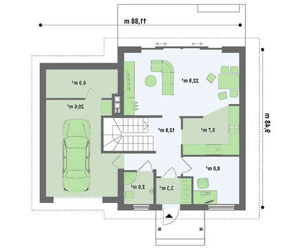 • 4M418 Проект одноповерхового будинку з мансардою та гаражем