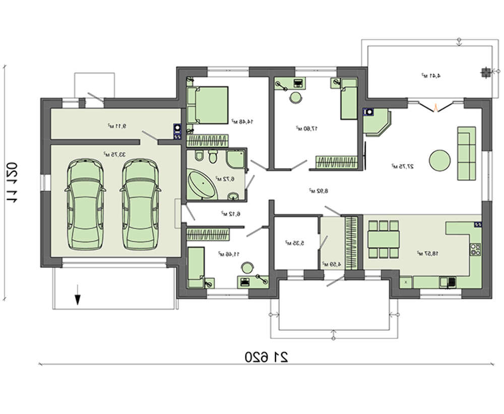 • 4M400 Проект одноповерхового будинку з великим гаражем