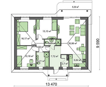 | Кут нахилу покрівлі: | 30° / 35° ° |