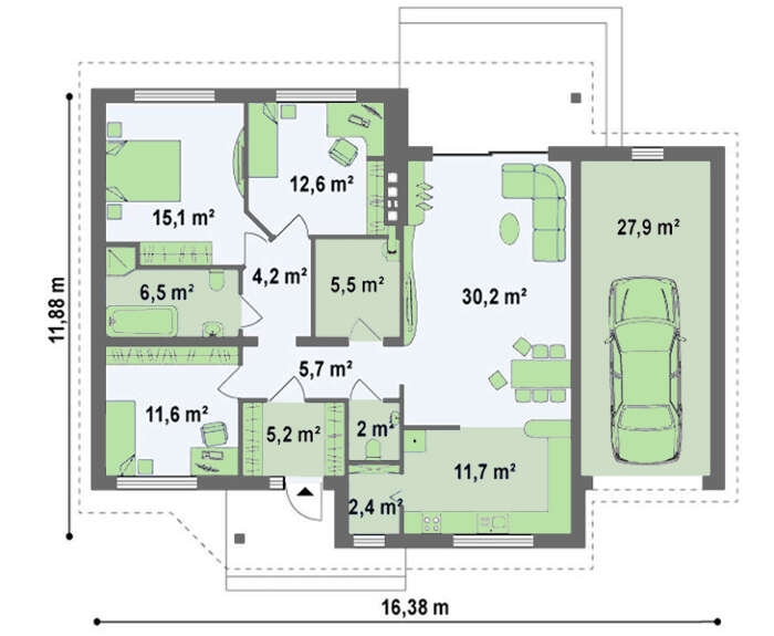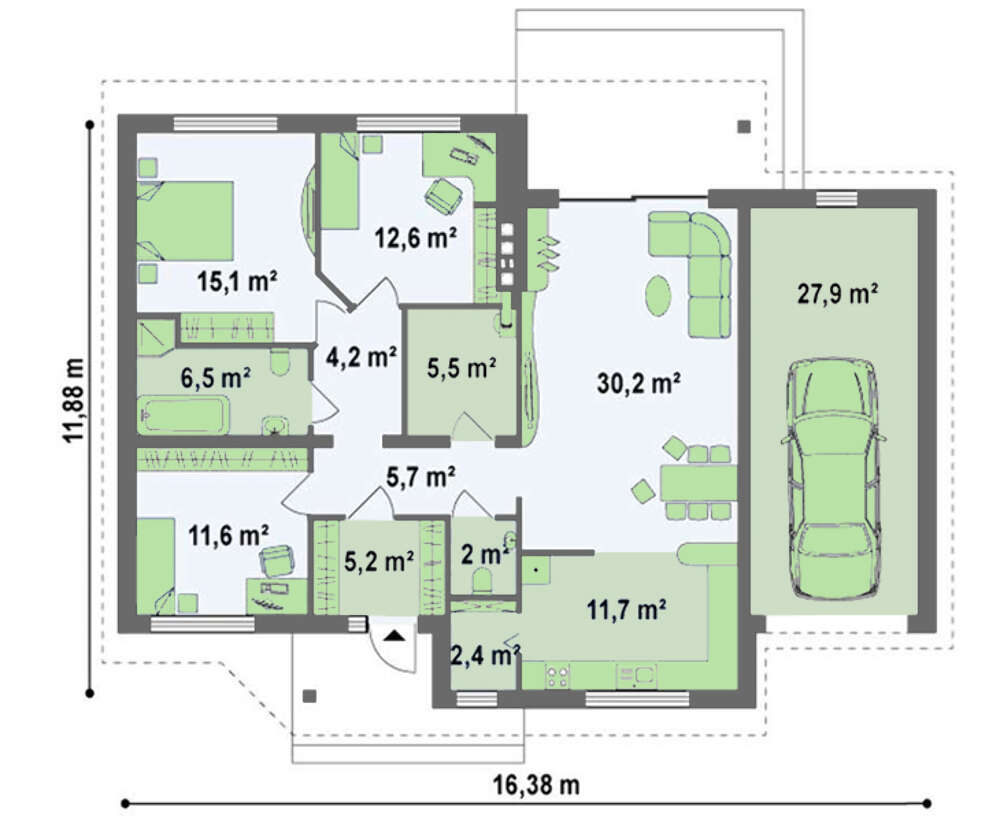 Проект одноповерхового класичного будинку з гаражем 4M414G