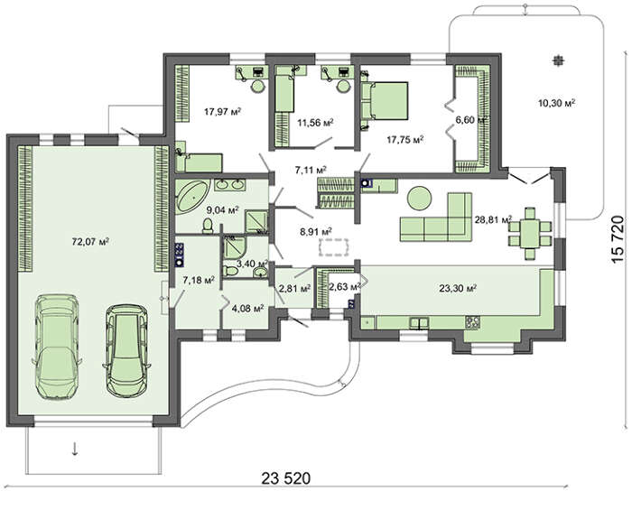 Всі наші типові проекти враховують основні потреби середньостатистичної сім'ї, щоправда, в такому випадку говорити про індивідуальність вашого майбутнього житла не доводиться. Але, щоб будинок виглядав оригінально і повністю відповідав вашим вимогам, ми готові внести зміни в проект.