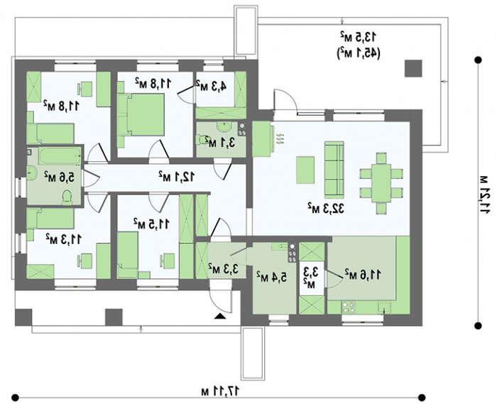 Проект одноповерхового котеджу площею 130 кв.м. 4M7032