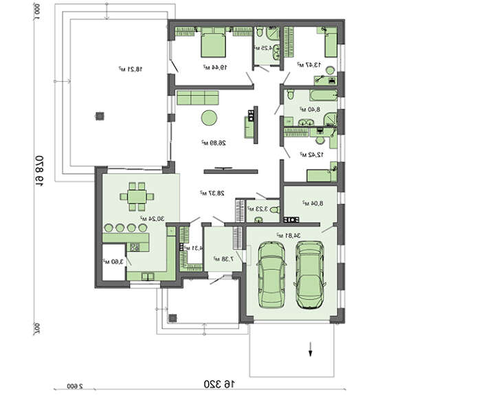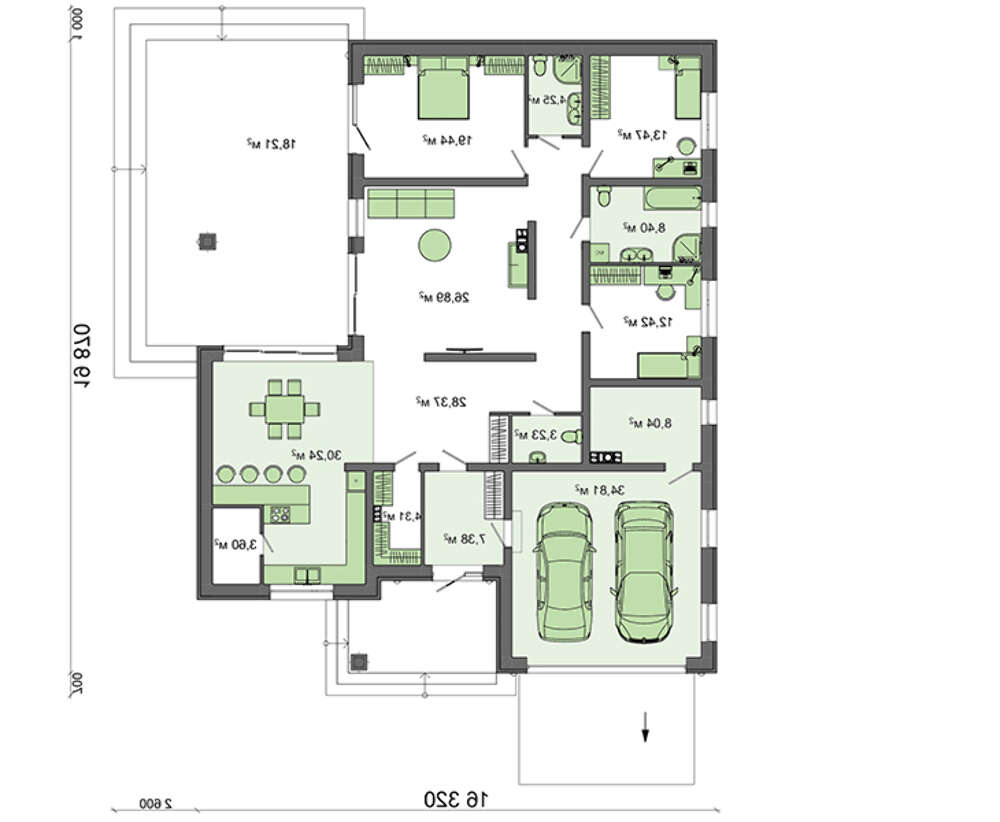 Симпатичний одноповерховий будиночок порадує забудовника, що віддає перевагу європейську архітектуру. У ньому все раціонально і практично. Котедж ідеальний для проживання 3-4 чоловік. Відсутність вичурностей і надмірностей робить будинок стильним і елегантним.