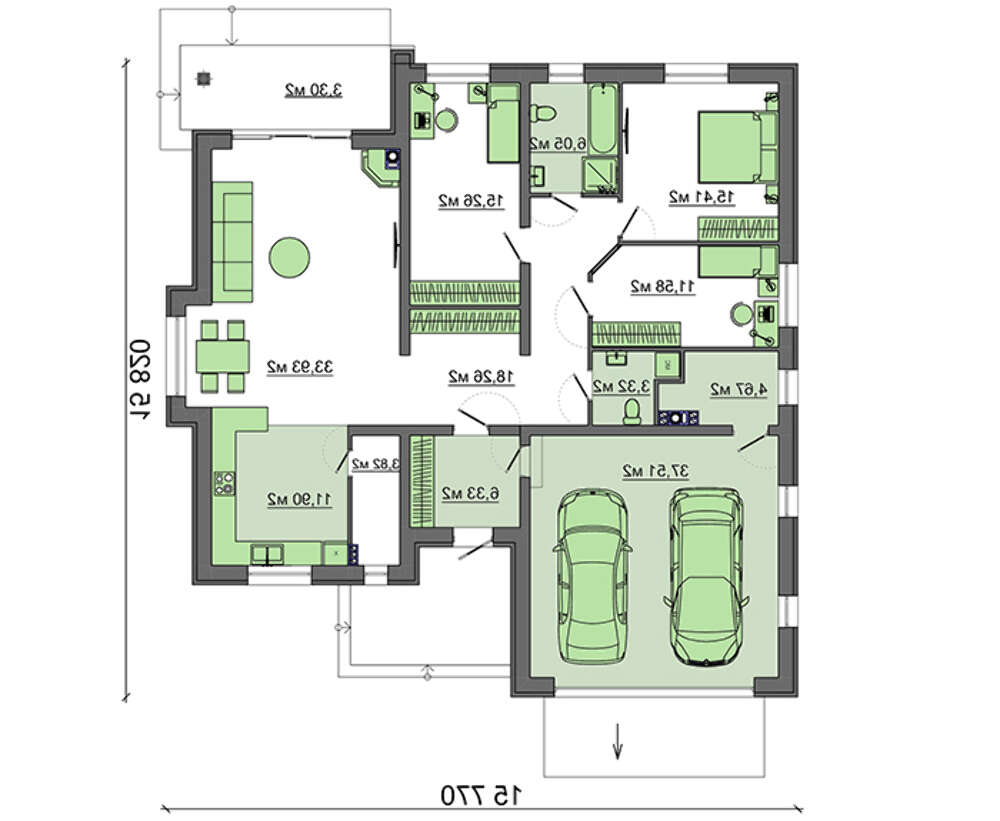 • 4M142 Проект одноповерхового котеджу з гаражем і мансардою