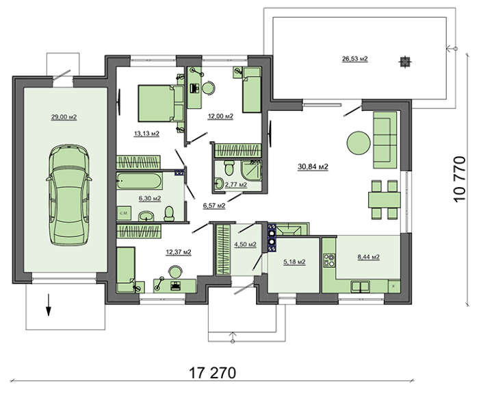 Всі наші типові проекти враховують основні потреби середньостатистичної сім'ї, щоправда, в такому випадку говорити про індивідуальність вашого майбутнього житла не доводиться. Але, щоб будинок виглядав оригінально і повністю відповідав вашим вимогам, ми готові внести зміни в проект.