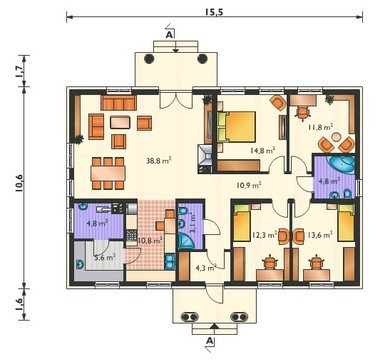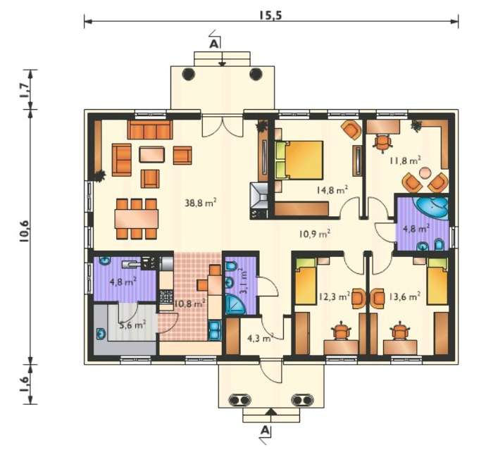 Проект одноповерхового маєтку з колонами на ганку 4M3484c