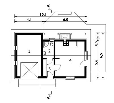 Проект одноповерхової будівлі з гаражем, санвузлом і каміном 4M2779