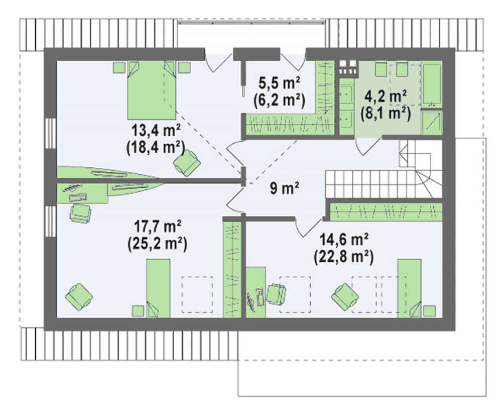 • 4M080a Проект приємного будинку з мансардою в сталевому стилі