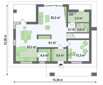 Кут нахилу покрівлі:35 °