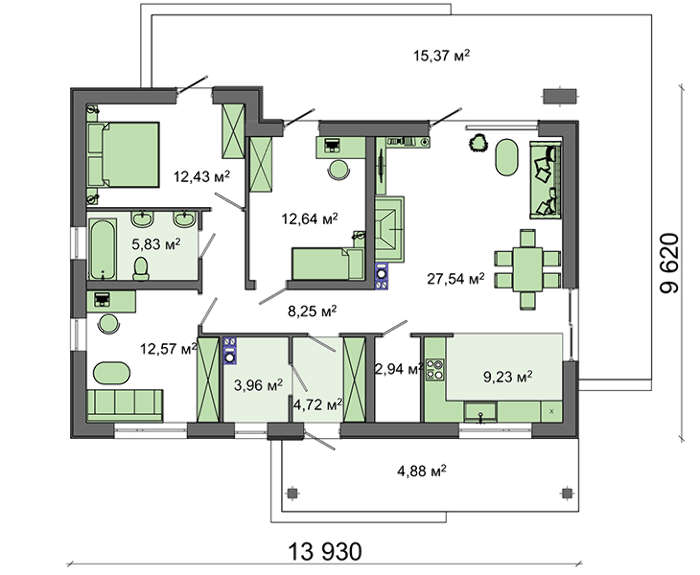 Всі наші типові проекти враховують основні потреби середньостатистичної сім'ї, щоправда, в такому випадку говорити про індивідуальність вашого майбутнього житла не доводиться. Але, щоб будинок виглядав оригінально і повністю відповідав вашим вимогам, ми готові внести зміни в проект.