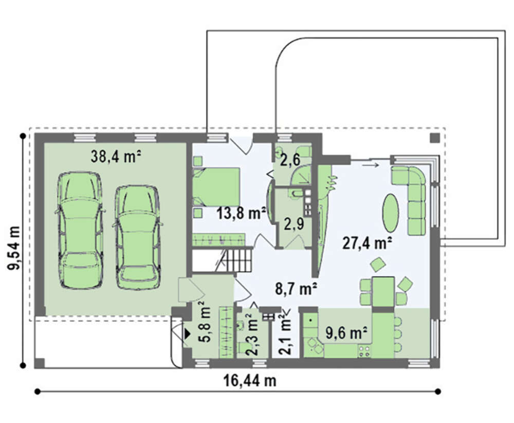 | Кут нахилу покрівлі: | 38° / 3 ° |