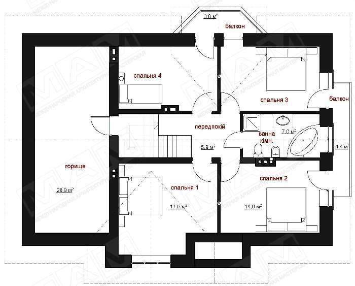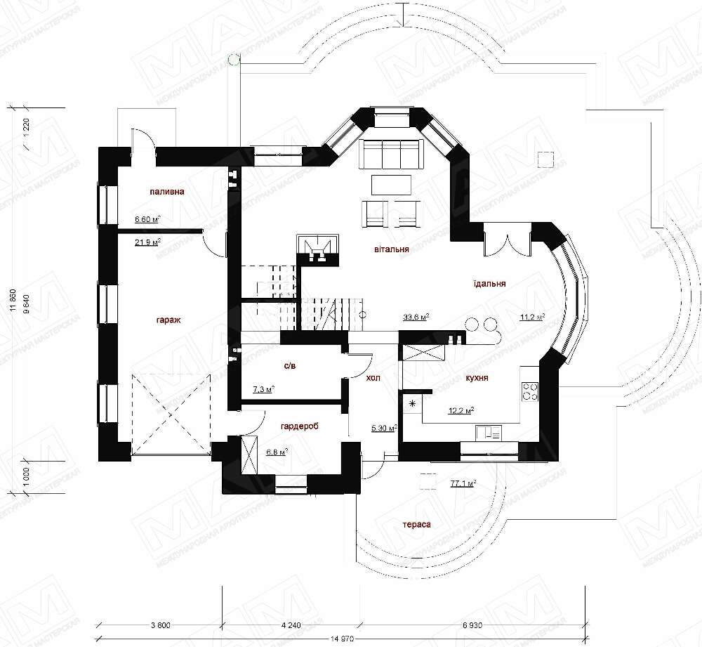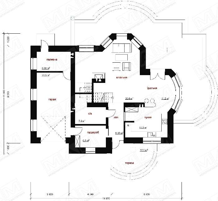| Дах: | керамічна черепиця, металочерепиця, цементно-піщана черепиця |